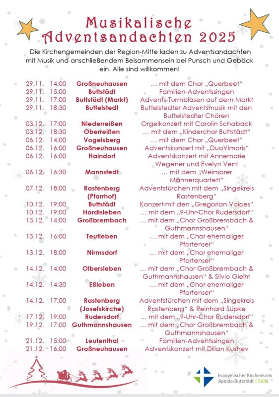 • Adventssingen in Buttstädt 29.11.2025 15 Uhr