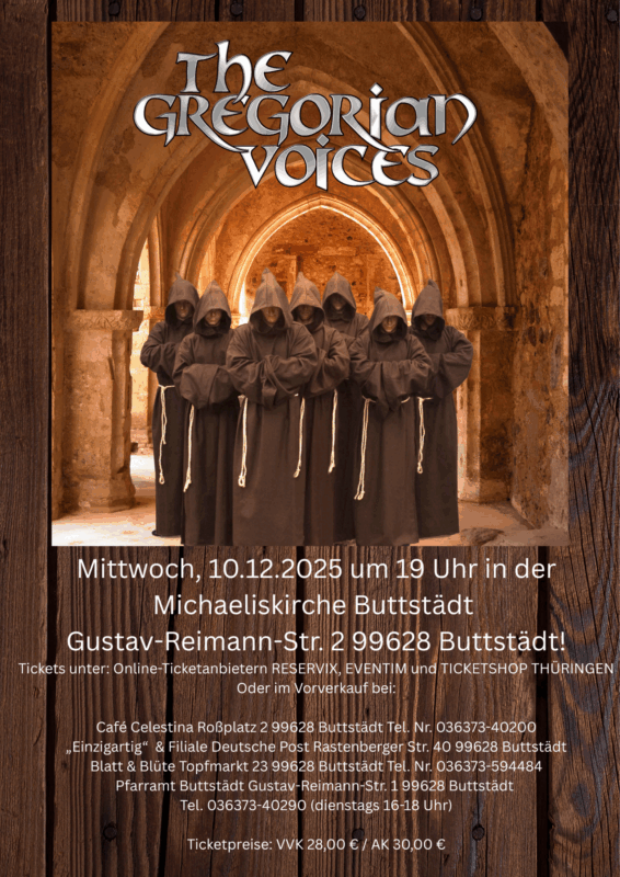 • Weihnachtskonzert Gregorian Voices in Buttstädt 10.12.2025